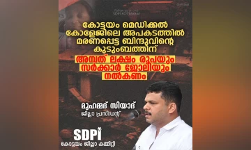 കോട്ടയം: ആരോഗ്യ വകുപ്പിനെ ആളെക്കൊല്ലും വകുപ്പാക്കിയ ആരോഗ്യ മന്ത്രി വീണാ ജോർജ് രാജിവെക്കണമെന്നാവശ്യപ്പെട്ട് വെൽഫെയർ പാർട്ടിയുടെ ആഭിമുഖ്യത്തിൽ കോട്ടയത്തും മുണ്ടക്കയത്തും പ്രതിഷേധ പ്രകടനം നടത്തി. കോട്ടയം മെഡിക്കൽ കോളേജ് ആശുപത്രിയിലേക്ക് നടത്തിയ മാർച്ച് ജില്ലാ ജനറൽ സെക്രട്ടറി അർച്ചന പ്രജിത്ത് ഉദ്ഘാടനം ചെയ്തു. ഭരണകൂട അനാസ്ഥയുടെ രക്തസാക്ഷിയാണ് കോട്ടയം മെഡിക്കൽ കോളേജിൽ കെട്ടിടം തകർന്ന് മരണപ്പെട്ട ബിന്ദുവെന്നും ധാർമിക ഉത്തരവാദിത്വം ഏറ്റെടുത്ത് ആരോഗ്യമന്ത്രി വീണാ ജോർജ്ജ് രാജിവെക്കണമെന്നും അർച്ചന പ്രജിത്ത് ആവശ്യപ്പെട്ടു. മണ്ഡലം പ്രസിഡന്റ് എ. ലത്തീഫ് അധ്യക്ഷത വഹിച്ചു. ചങ്ങനാശ്ശേരി മണ്ഡലം പ്രസിഡന്റ് ഷാജുദ്ദീൻ, ഫൈസൽ കെ.എച്ച്, നിസാം കുമ്മനം, ഷഹബാസ് എന്നിവർ നേതൃത്വം നൽകി. മുണ്ടക്കയത്ത് നടന്ന പ്രകടനത്തിന് ജില്ലാ സെക്രട്ടറി അൻവർ ബാഷ, മണ്ഡലം സെക്രട്ടറി ബൈജു സ്റ്റീഫൻ, സെക്രട്ടറി യൂസുഫ് ഹിബ, ട്രഷറർ ഷഹീർ വി.എം എന്നിവർ നേതൃത്വം നൽകി.