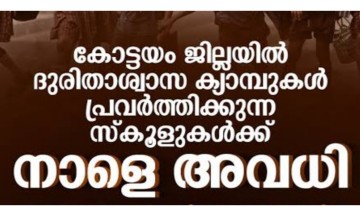 കോട്ടയം ജില്ലയിൽ ദുരിതാശ്വാസ ക്യാമ്പുകൾ പ്രവർത്തിക്കുന്ന സ്കൂളുകൾക്കും സ്ഥാപനങ്ങൾക്കും അവധി